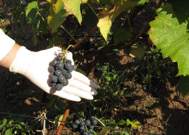 Beere: klein, rund bis oval, rotgrau, typisches Sorten Bukett